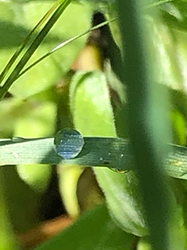 It is stunning when we look closely at nature. This miniscule drop of morning dew magnifies the fibers of the stem on which it sits.