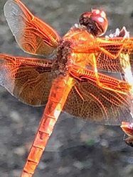It is red dragonfly season at the Monastery. They spend hours flitting around the courtyard pond.