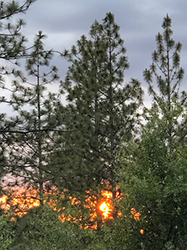 A late spring sunset blazes through the Monastery trees.