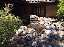 The courtyard waterfall creates the sound of a gently flowing creek as a backdrop to meditation.