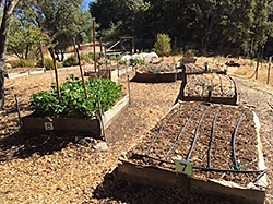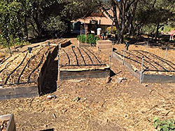 Green plants in Garden Bed 8 and under protective cover in the rear signal tasty, nutritious meals to come.