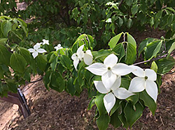 The dogwood tree is displaying its spring blossoms also.