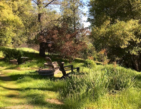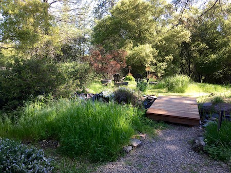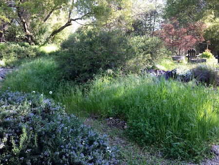 The courtyard sitting area demonstrates how the grasses have loved the abundance of rain this winter.
