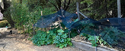 Foliage of the squash plants have inched beyond the confines of the garden beds.