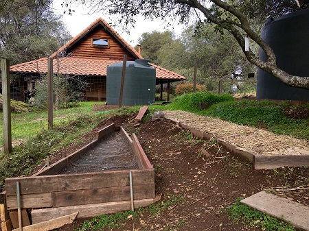 The garden has new beds – one long and narrow and the other triangular, utilizing the available space creatively.